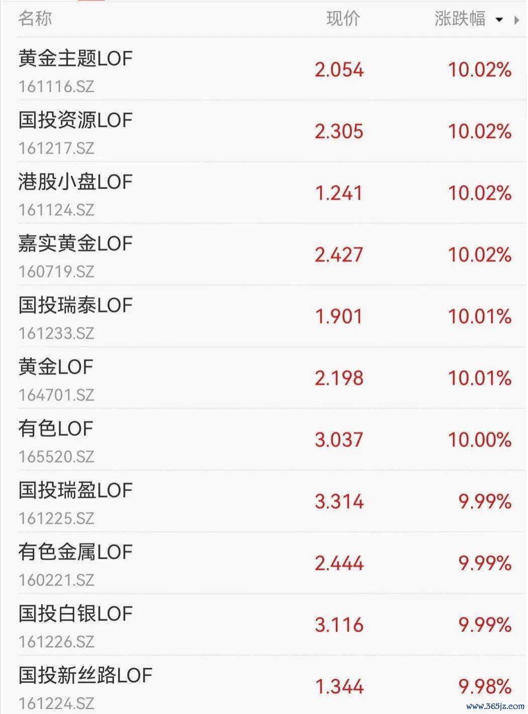 本日场内多只商品LOF居品涨停12月24日,国外黄金、白银价钱接连创下新高。 本日,场内多只商品LOF居品涨停,包括黄金主题LOF、嘉实黄金LOF、黄金LOF、有色LOF、有色金属LOF、国投白银LOF等诸多居品。此外,国投瑞银基金旗下的国投资源LOF、国投瑞泰LOF、国投瑞盈LOF、国投新丝路LOF等多只LOF居品也集体涨停。【详见】